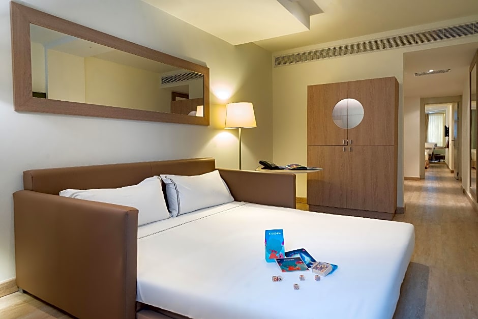 DOUBLE ROOM FOR SINGLE USE is 323 square feet and includes either 2 single beds 80-130 width or a king-size bed 150-183 width plus balcony, desk, ironing set, and bathrobes and is Wheelchair-accessible with a Disability-friendly bathroom.